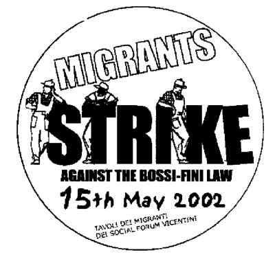Unsere Arbeit mit den Migranten geht weiter. Im Augenblick zielt sie unter der Parole eines neuen Generalstreiks auf einen entschlossenen Widerstand gegen das Gesetz Bossi-Fini, das erst noch den Senat passieren muß.